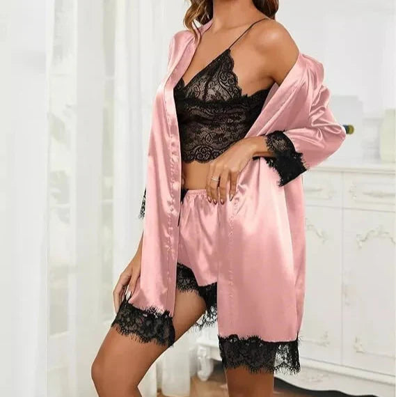4 Pcs/Set Lace Satin Shawl Pajamas